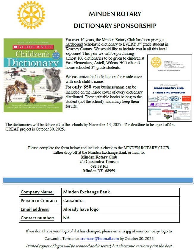 Every year, the Minden Rotary Club gives away a hard-bound dictionary.